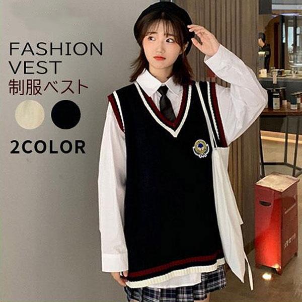 Amazon Co Jp Aculldo スクールセーター スクールベスト Vネック 学生 レディース ノースリーブ ニットセーター ガールズゆったり 学生制服 可愛い カジュアル 春秋 服 ファッション小物
